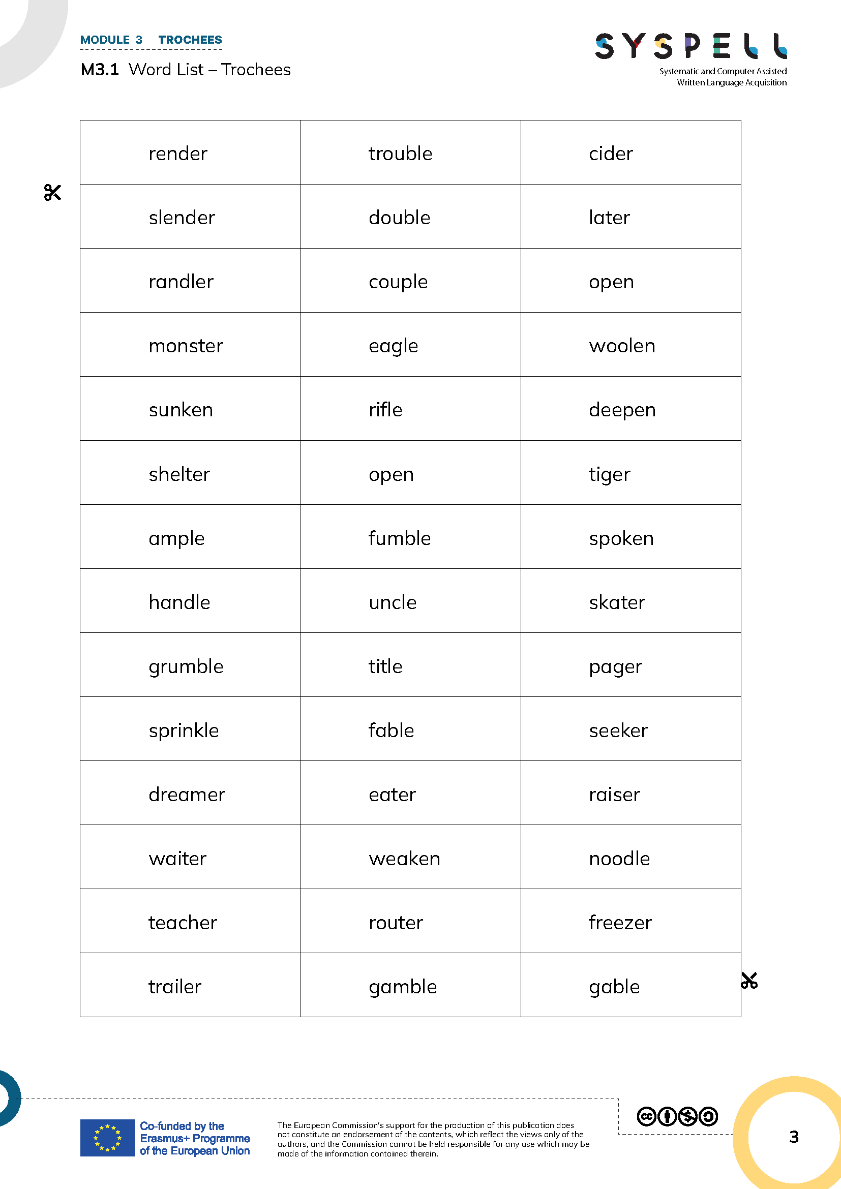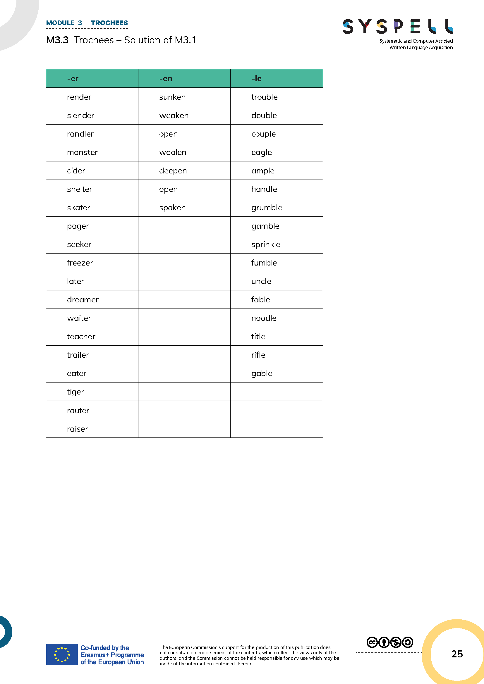 → The intended solution is to sort them according to the type of unstressed/light syllable: el/le, en, er: see Table M3.3 TROCHEES - SOLUTION