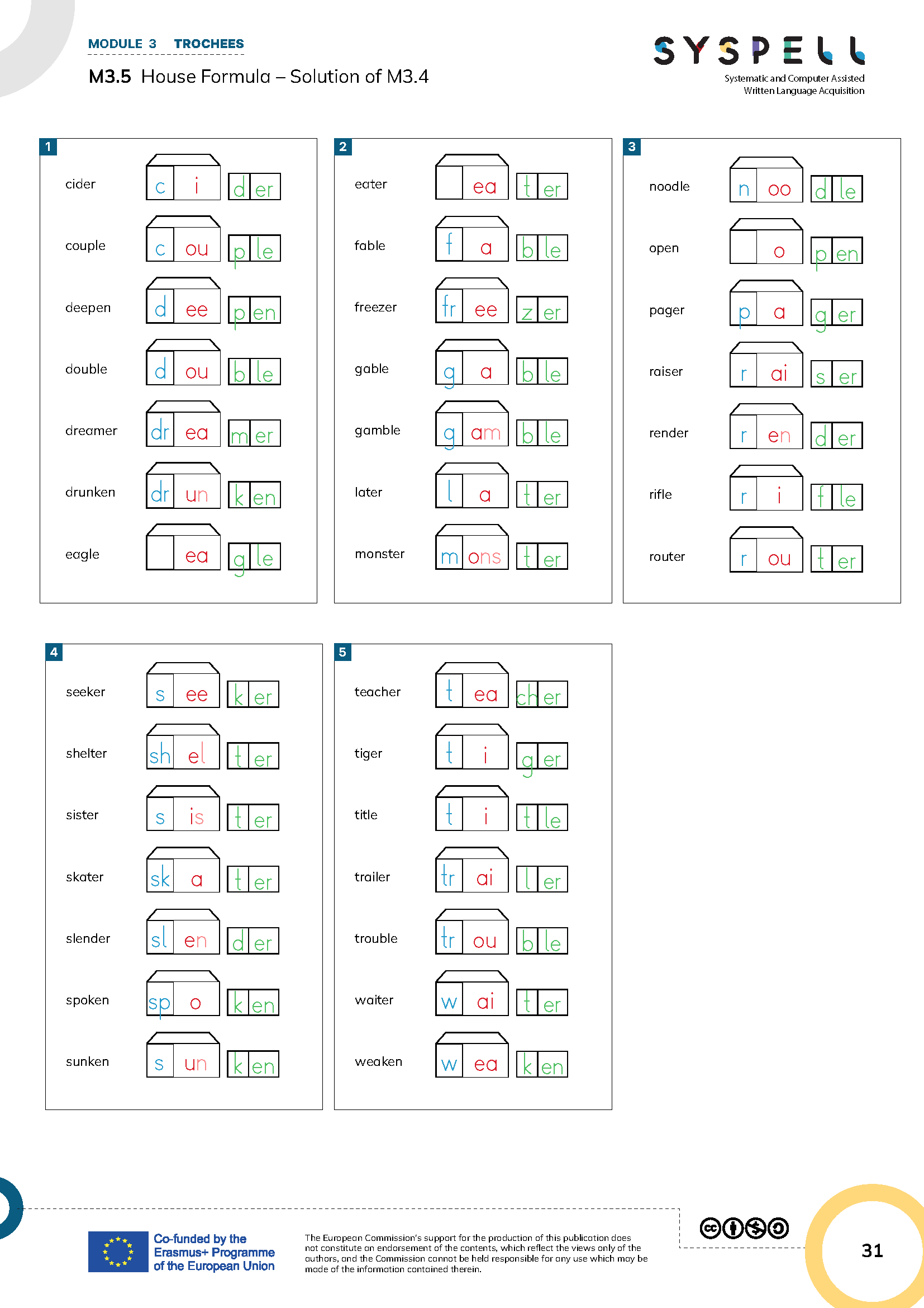 The teacher writes a few more words as examples on the board like shown in M3.5 HOUSE FORMULA SOLUTIONS .
